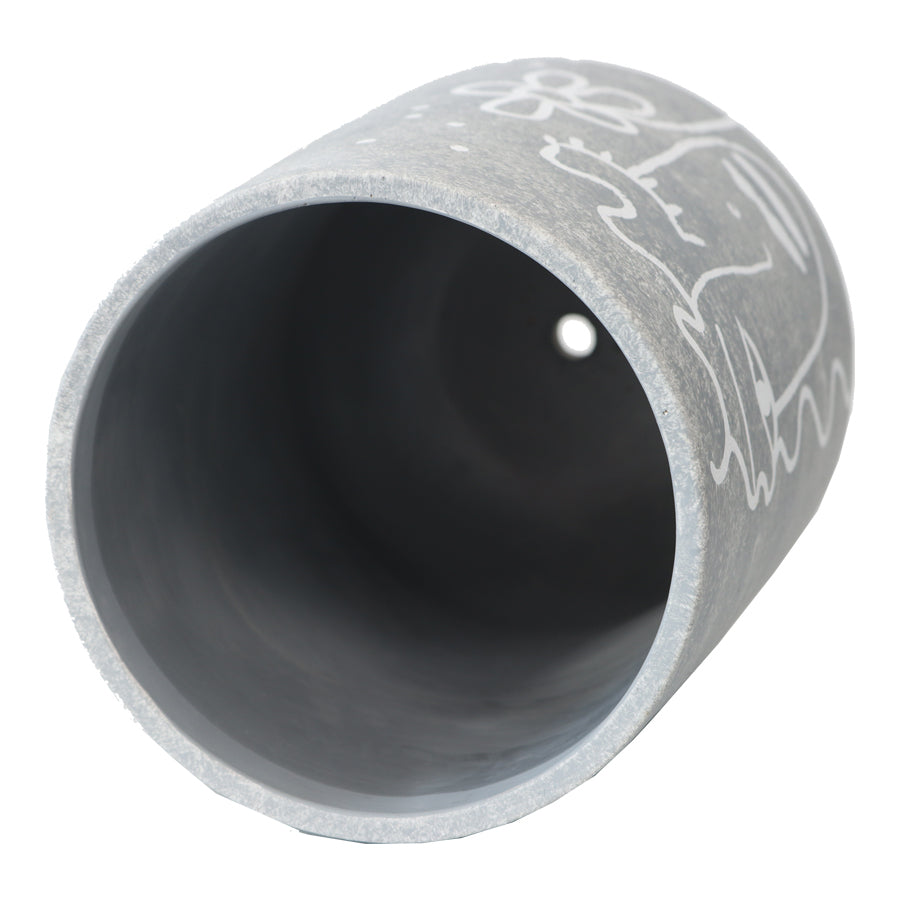 Modern, artsy and full of personality - this grey cement planter features a striking line-drawn face and floral design, perfect for adding a creative edge to your indoor greenery.
